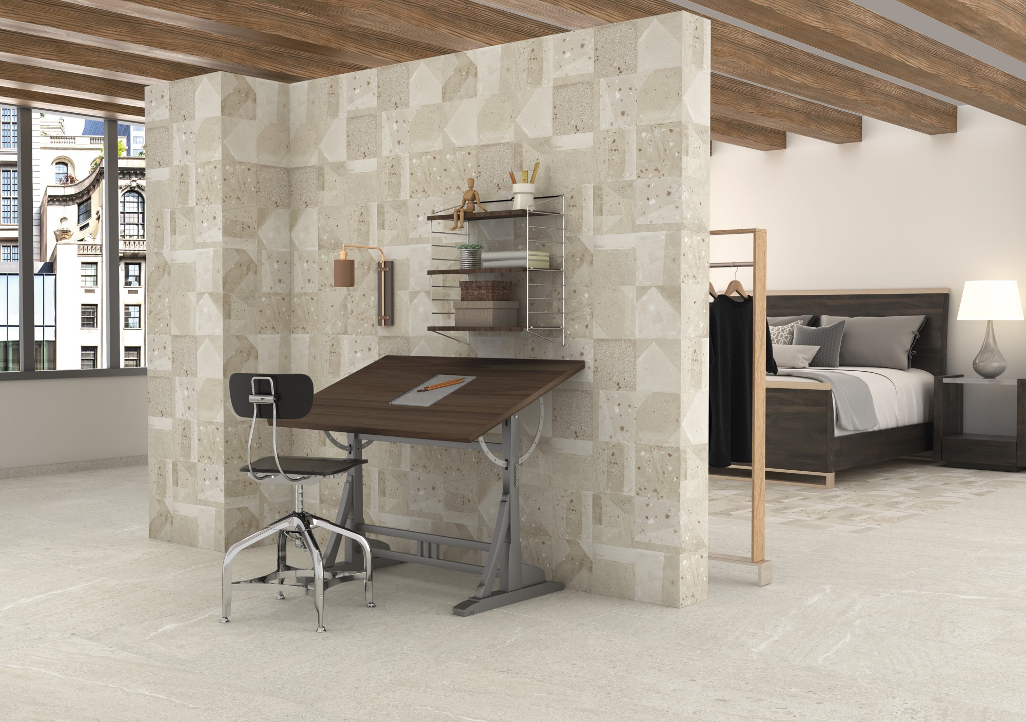 With a mixture of stone and cement patterns, Agnes was designed to mimic the creativity of terrazzo.