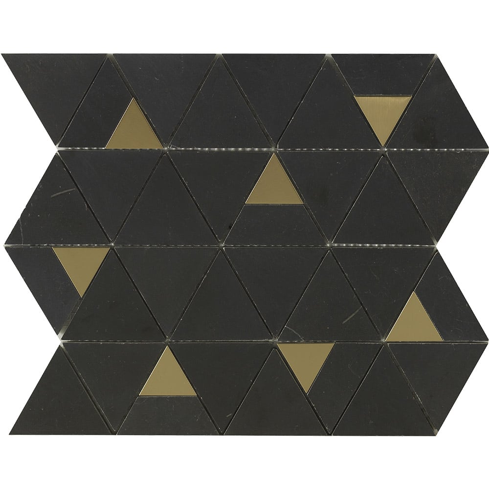 The Art Deco mosaic design aesthetic using honed marbles and brass, in angular and symmetric designs that forges a luxurious and exotic feel to your space.