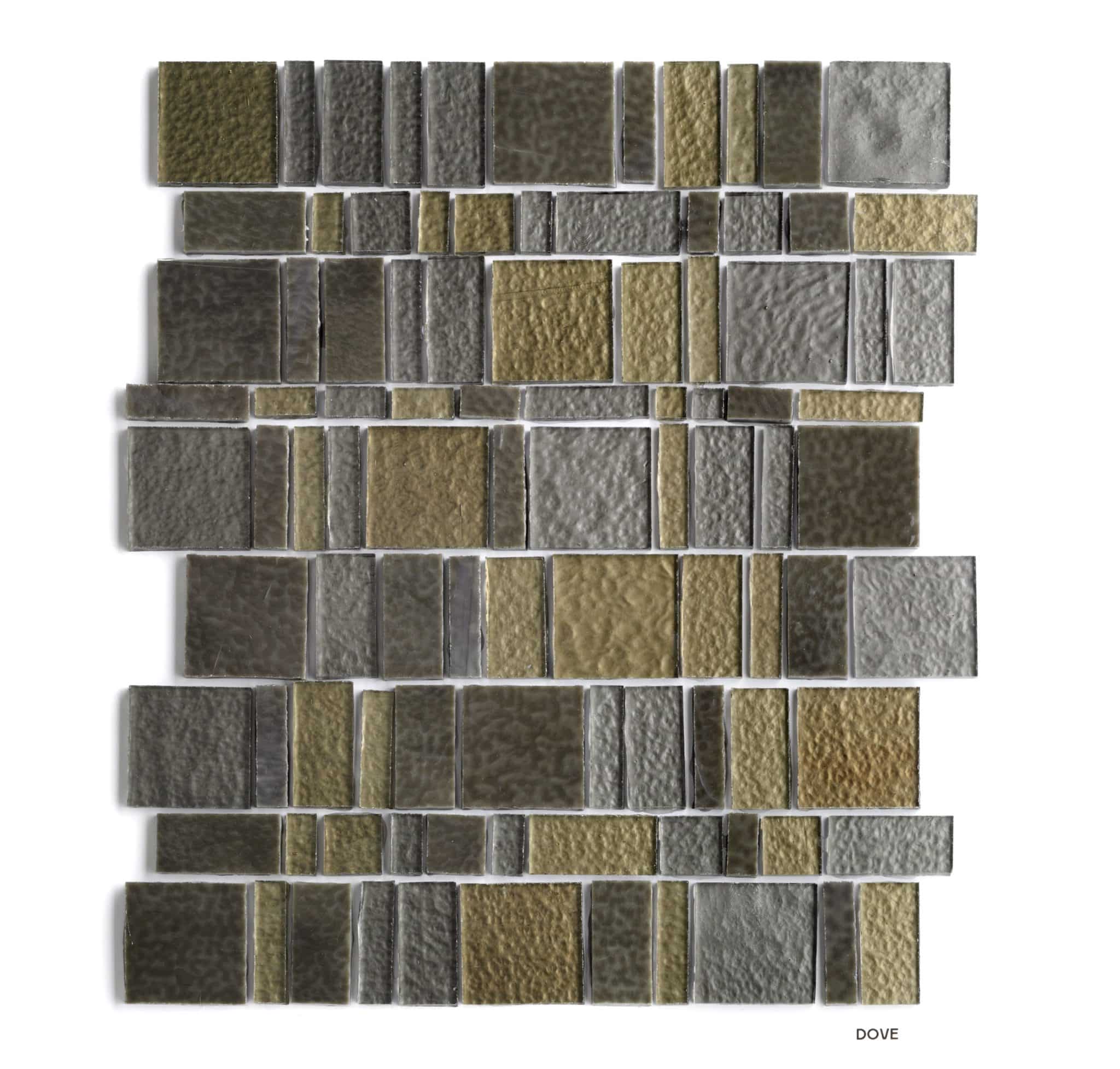 This collection utilizes a transparent material, hand-cut to create a luminous surface. Its design alternates smooth and corrugated tiles to form chrome and iridescent textures. To achieve the natural look of Mother of Pearl, variations in color and tone are intentional and should be expected.