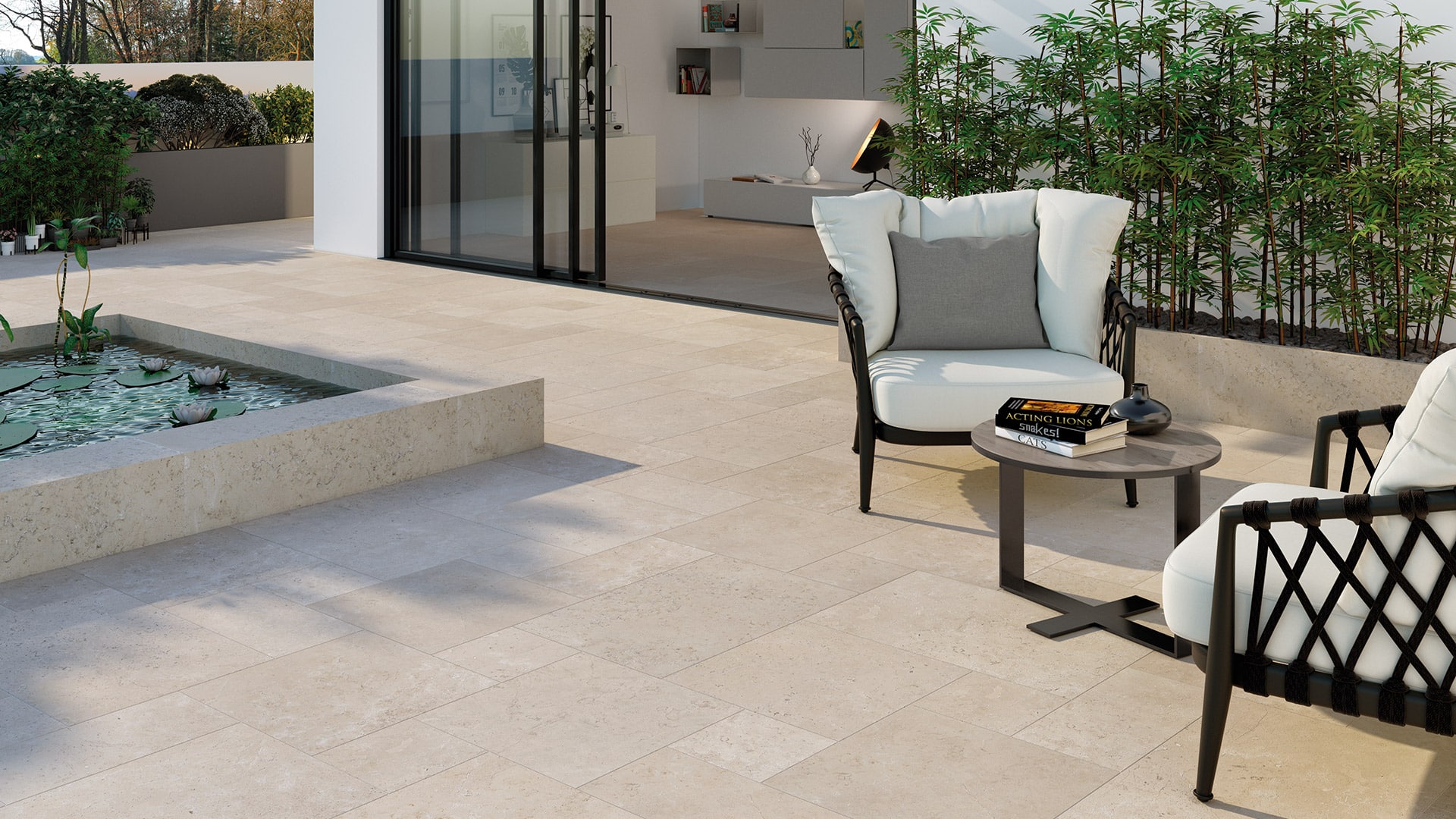 European alfresco styling is only a step away when you consider the Ostuni natural stone marble, French pattern tile. With a textured weathered surface and a structured finish this tile is perfect as an alternative for outdoor pavers, in a modular French pattern.